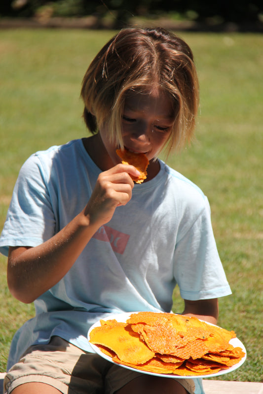 Grown in Australia, on sustainable farms, our mango are harvested ripe, then hand-sliced and dehydrated at low temperatures to achieve a perfectly soft texture. This gentle process allows us to preserve the mango's naturally sweet, tangy flavour, vibrant colour and nutrient density without the addition of sugar, sulphur dioxide or preservatives.