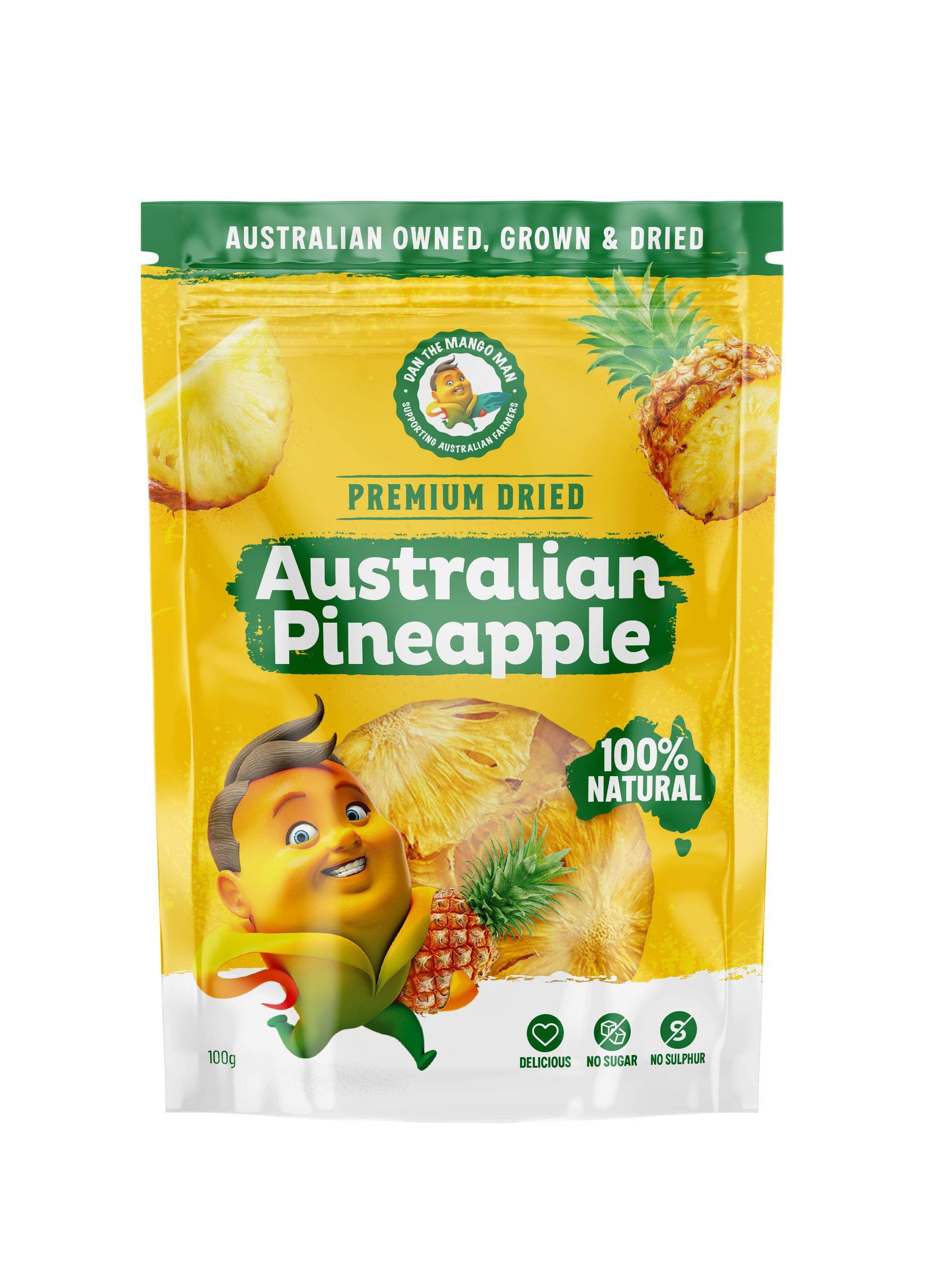 This Australian grown and processed Dried Pineapple has a sweet and tangy fruity flavour and aroma, firm texture and natural golden colour. The fully natural concentrated pineapple flavour contains no added sugar or preservatives, artificial colours or flavours and is non-GMO. Dried Pineapple slices are a delicious snack, great on hikes and road trips, or for school and work lunch boxes. They are a convenient pantry item, particularly when fresh Pineapples are out of season, and can be used in sweet or savoury recipes.