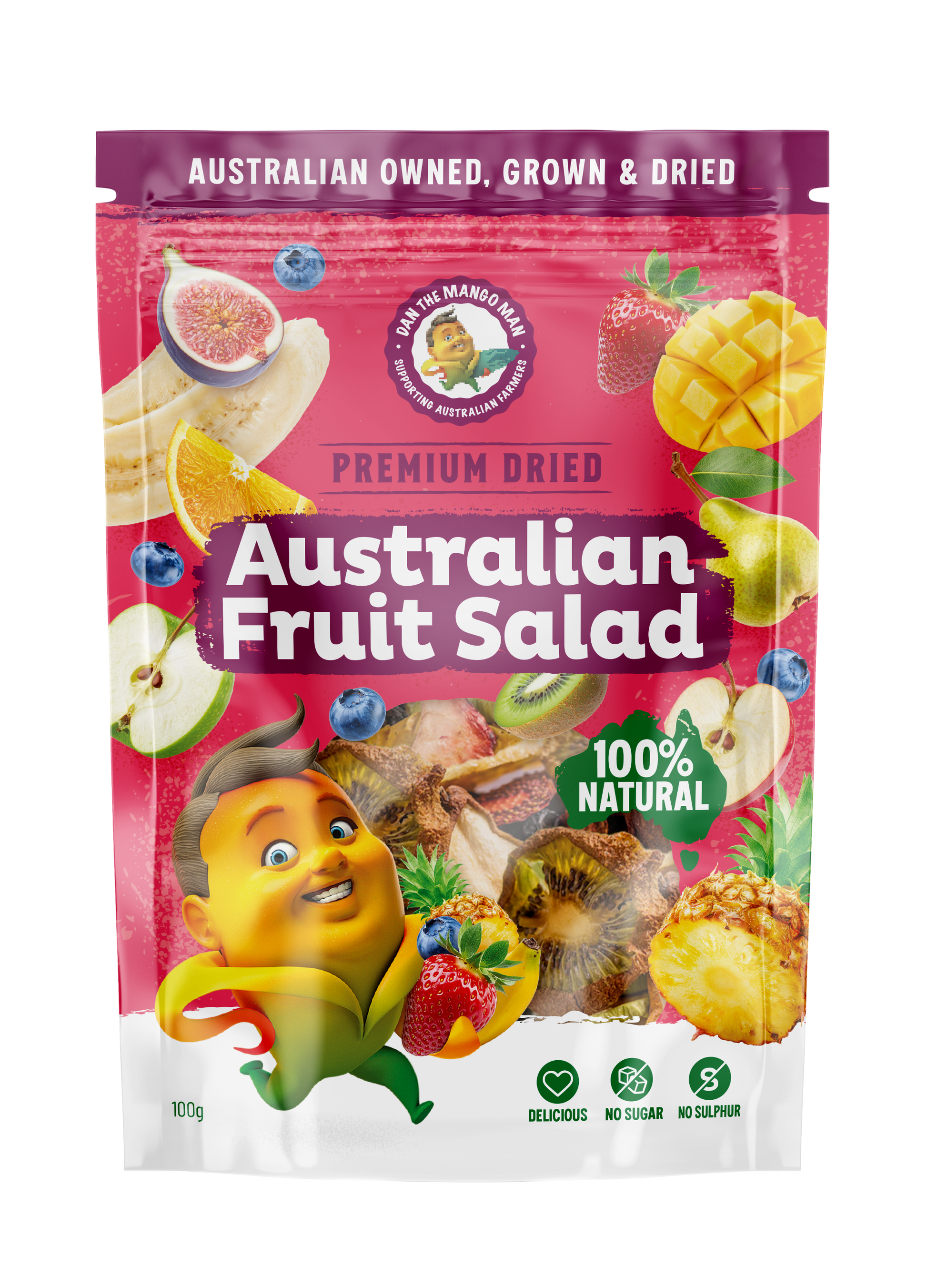 Our Australian Dried Fruit Salad is a naturally sweet, colourful mix made from 100% Australian fruit, carefully ripened to taste, then slowly dried to lock in flavour and goodness.